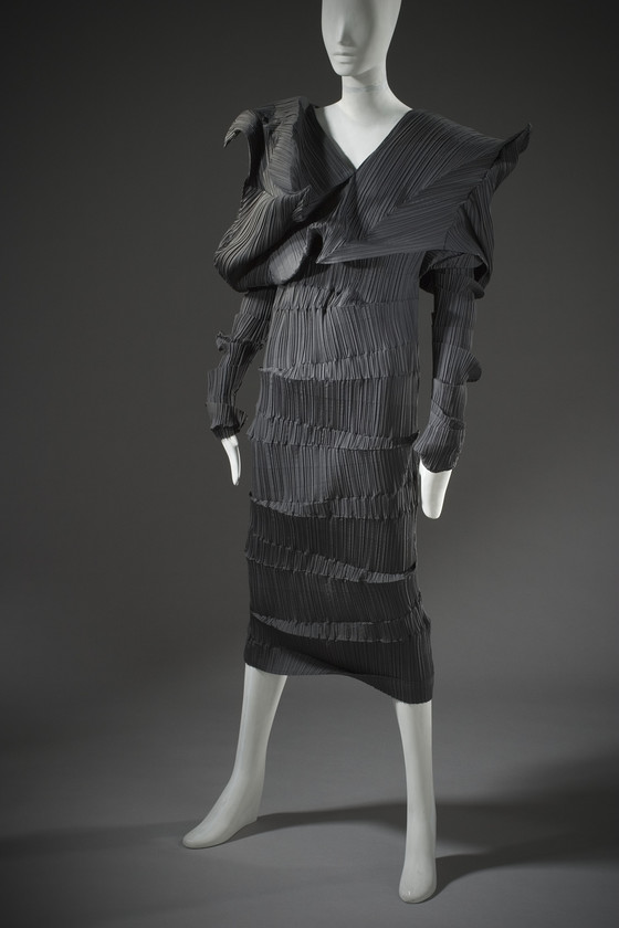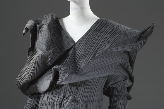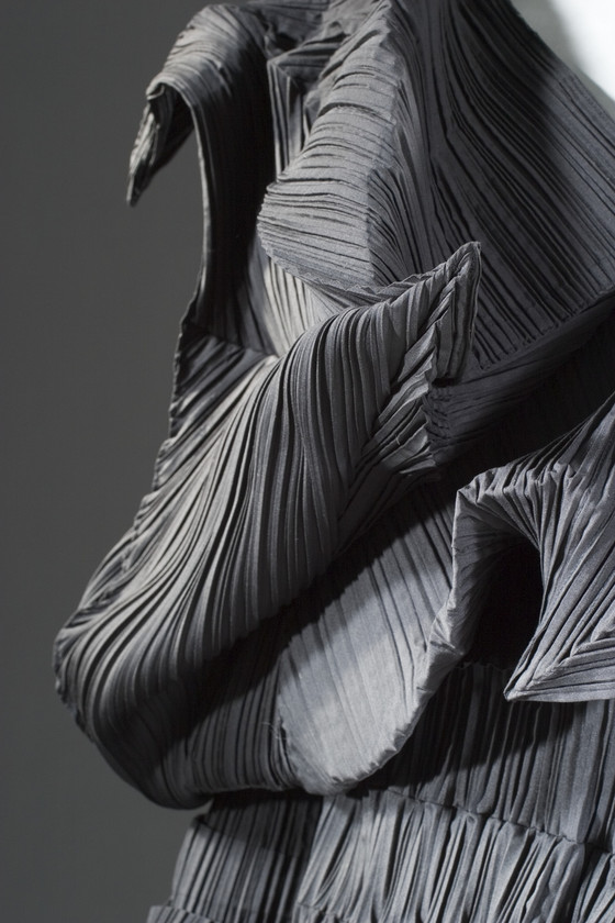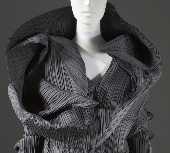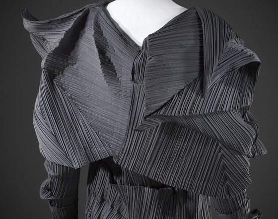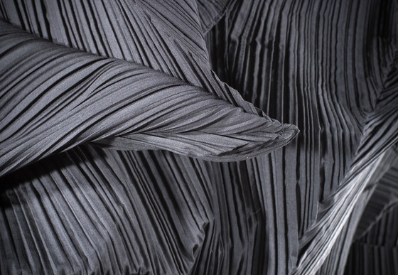 Polyester plain weave, with heat-set pleats