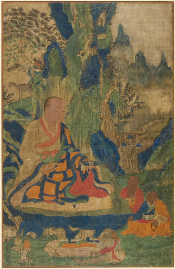 This painting and its five set mates (M.2005.154.1-.6) were originally part of a Tibetan set of the Sixteen Great Arhats (Buddhist saints) reportedly from a Trungpa Monastery in Surmang in the Kham region of northeast Tibet bordering China. Founded in the 15th century by the Mahasiddha Trungmase and now known collectively as the Surmang Monastery, it was a complex of nine monasteries that was the home of the Trungpa tulkus (incarnate lamas) in the Kagyu lineage. The Surmang monasteries were destroyed in 1958 during the Chinese invasion of Tibet.