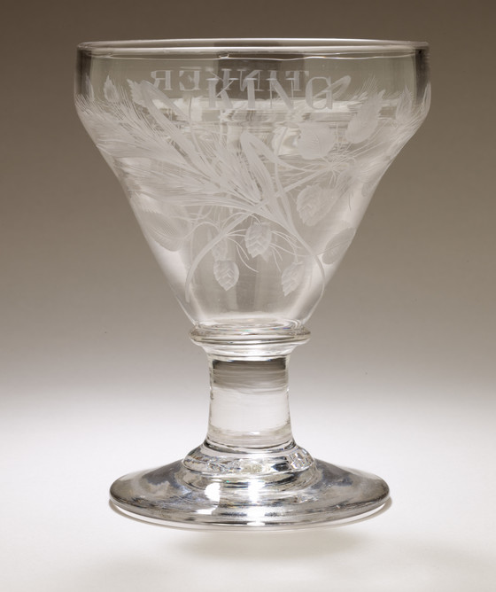 Colorless, engraved glass