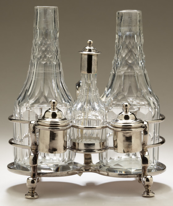 .1, .2a) Tall bottle lid diameter: 2 1/8 in. (5.4 cm ); .1, .2a) Tall bottle lid height: 1 3/4 in. (4.45 cm); .1, .2b) Tall bottle height: 5 7/8 in. (14.99 cm); .1, .2b) Tall bottom diameter: 1 in. (2.54 cm); .3a) Small bottle lid with spoon diameter: 3/4 in. (1.91 cm); .3a) Small bottle lid with spoon length: 3 1/2 in. (8.89 cm); .3b) Small bottle diameter: 1 1/8 in. (2.86 cm); .3b) Small bottle height: 3 in. (7.62 cm); .4) Frame: 3 3/4 x 5 1/2 x 5 1/4 in. (9.46 x 13.97 x 13.34 cm)