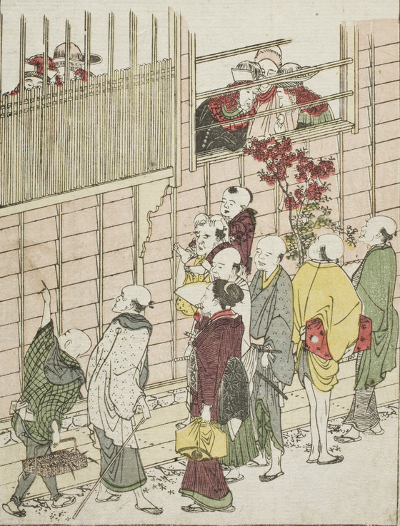 Single-page book illustration; color woodblock print