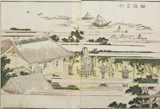 Double-page book illustration; color woodblock print