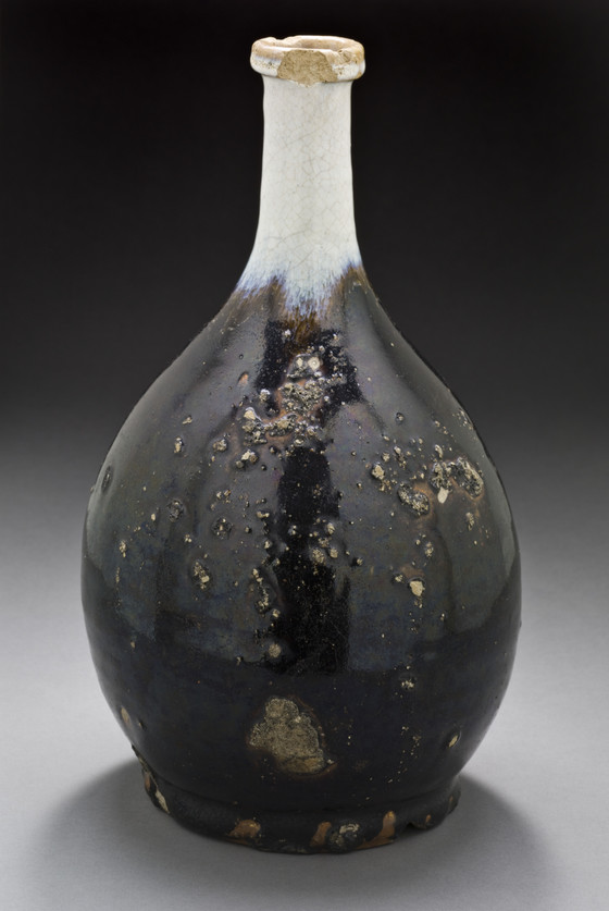 Alternate Title: 越中瀬戸焼か鉄釉藁灰流鶴首徳利