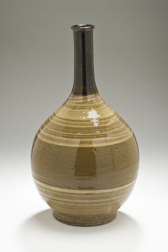Hizen ware, Takeo style; stoneware with iron glaze, white slip and clear glaze