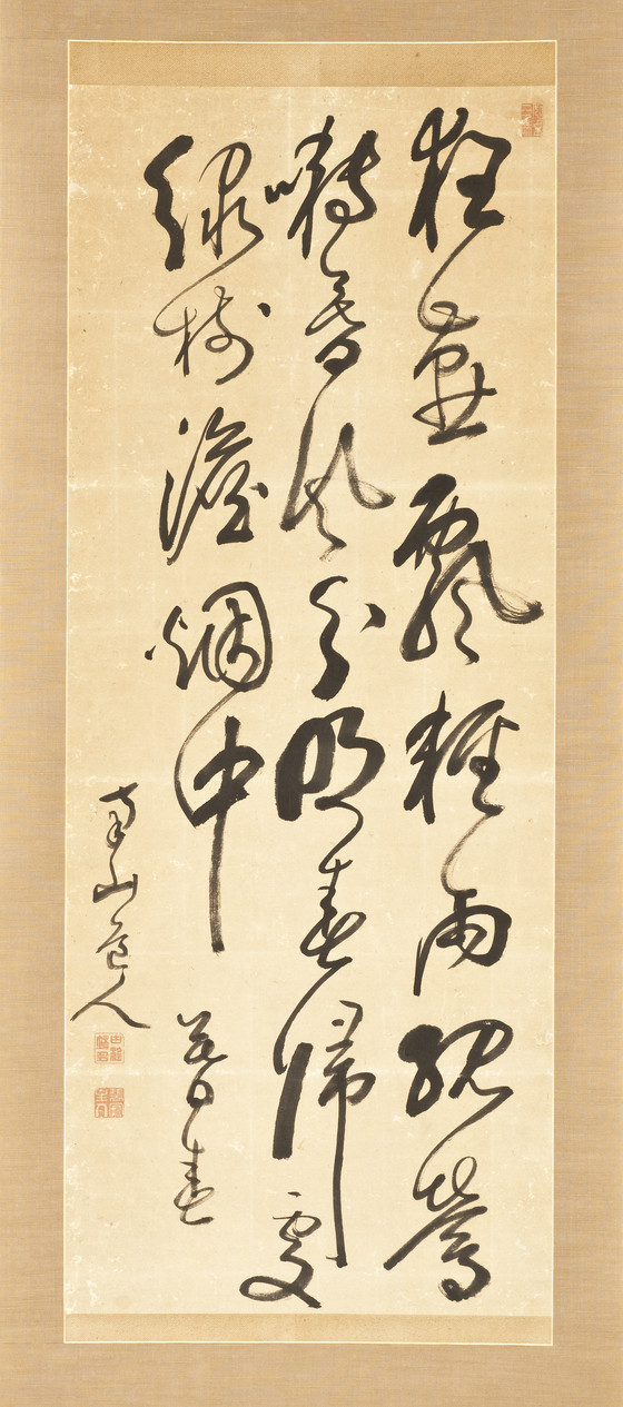 Alternate Title: 狂燕飄輕雨孤鶯 囀暮風分明春帰處 緑朱修樹澹烟中