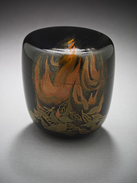Tea Caddy with Burning Autumn Leaves Design