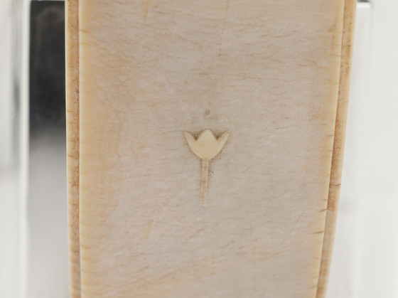 This four-piece tea service—one of only three in existence—is a masterpiece of Hoffmann's mature style. With its sleek surfaces, subtle repoussé ornament, and delicately carved tulips on ivory handles, the service combines luxury with modernity, a hallmark of Hoffmann's work for decades. In 1903, he established the cooperative workshop in Vienna, the Wiener Werkstätte. He and Koloman Moser (who left the firm in 1907) created departments for metalwork, bookbinding, leatherwork, cabinetmaking, glass, and ceramics, as well as an architectural office. A few years later, departments for printing, fashion, and textiles were added. Ambitiously, they aimed to cover all the crafts necessary to create a Gesamtkunstwerk—a total work of art that integrated every aspect of the design. In June of 1922, Hoffmann's friend, the émigré designer Joseph Urban, opened a branch of the company on Fifth Avenue in New York, where the silver tea service was sold. Trained as an architect, Urban immigrated to the United States in 1912, where he became the chief set designer for the Metropolitan Opera and for the Ziegfeld Follies in New York, and continued practicing as an architect. Urban had gone back to his native Vienna after World War I and was deeply affected by the serious depression that came after Austria's defeat in the war. When he returned to the U.S., he launched the "Artists Fund" to send aid to destitute artists. As another way to help his practically starving countrymen, he raised the money to open a salesroom for the Wiener Werkstätte in New York. This silver tea service of consummate craftsmanship was illustrated in the company brochure and priced at $650, a staggering figure for the time. We can date the set very precisely, since the Wiener Werkstätte kept detailed records, and the company archives are at the National Museum of Applied Art (the MAK) in Vienna. According to the records, the head of production, Philipp Häusler, signed off on the drawings for the tea set in March of 1922, authorizing it to be made. Three sets were produced, and the work was finished in March, 1923. (Another example is at the Richmond Museum of Art; the location of the third is unknown.) The Wiener Werkstätte of America closed in December 1923 after only eighteen months, however, as only a small minority of adventurous New Yorkers were patrons of proto–art deco. (The style was popularized at the Paris Exposition of 1925.) Hoffmann himself considered this service of such importance that he included it in the sumptuous catalogue celebrating the company's twenty-fifth anniversary, The Wiener Werkstätte 1903-1928: Modern Decorative Art and its Path. The teaset was purchased from Joseph Urban by Frances Marion, a renowned screenwriter in Los Angeles, the first woman to win an Academy Award for the best original screenplay. Urban and Frances Marion knew each other well from their close association with William Randolph Hearst. Urban was Hearst's favorite art director and personal friend—during the 1920s, he designed dozens of films for Hearst's company. And since Frances Marion was one of Hearst's favorite writers, she and Joseph Urban worked together on several Hollywood films. In the 1921 feature Enchantment, Urban placed the first modern interior design in an American movie—a Wiener Werkstätte dining room.