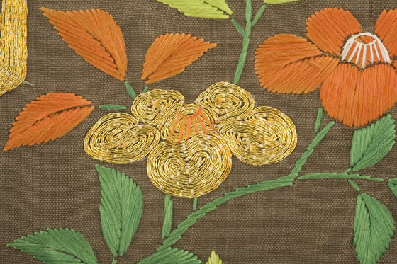 Although layers of magnificent robes distinguished ceremonial court dress as early as the eighth century, the kosode was originally an undergarment that was subsequently embellished and adopted as formal dress in the fourteenth century. During the ensuing years, this garment developed into a "canvas" for accomplished painting, weaving, innovative dyeing techniques, and lavish embroidery of silk and precious metals. The singular style of one type of kosode, the koshimaki ("waist wrap"), evolved in the fifteenth century from the practice of allowing a heavy outer robe, the uchikake, to slip off the shoulders but remain a part of the ensemble with its sleeves tied at the waist over the kosode beneath. In its later and most distinctive configuration, the koshimaki hung from a specially designed obi (sash) that knotted at the back of the waist. Stiff paper tubes filled with straw were inserted into the obi's long tie ends, creating a winglike extension over which yhe koshimaki's sleeves projected to their full width, permitting the remainder of the garment to spread out over the floor as a sweeping train.