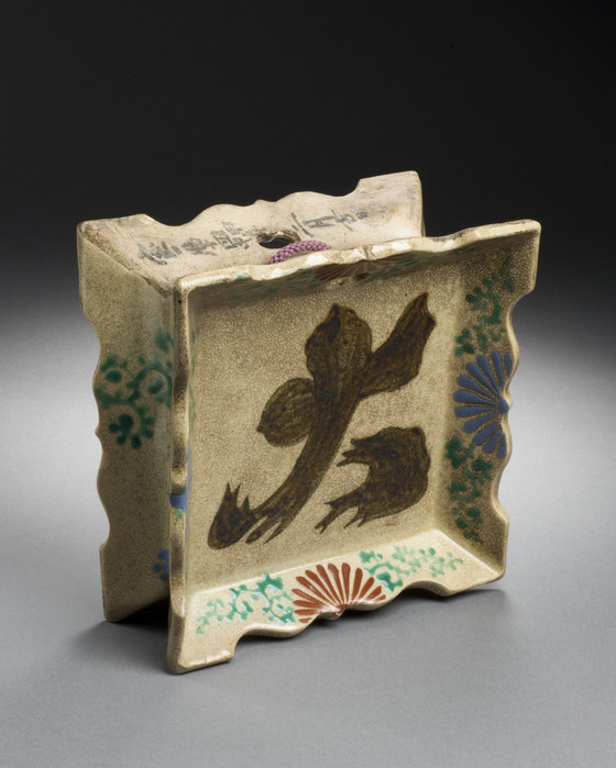 Kyoto ware (Kyōyaki); stoneware with overglaze enamels and underglaze iron brown