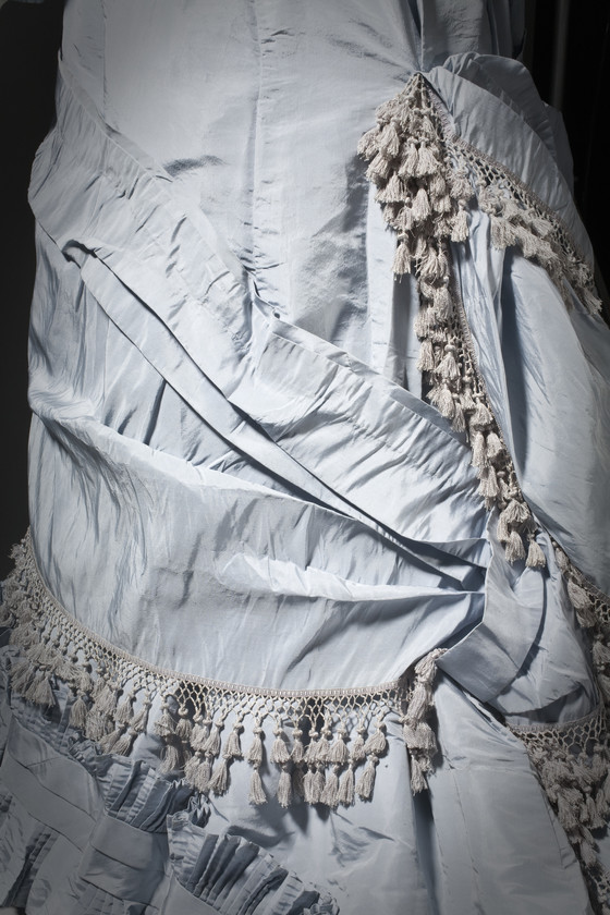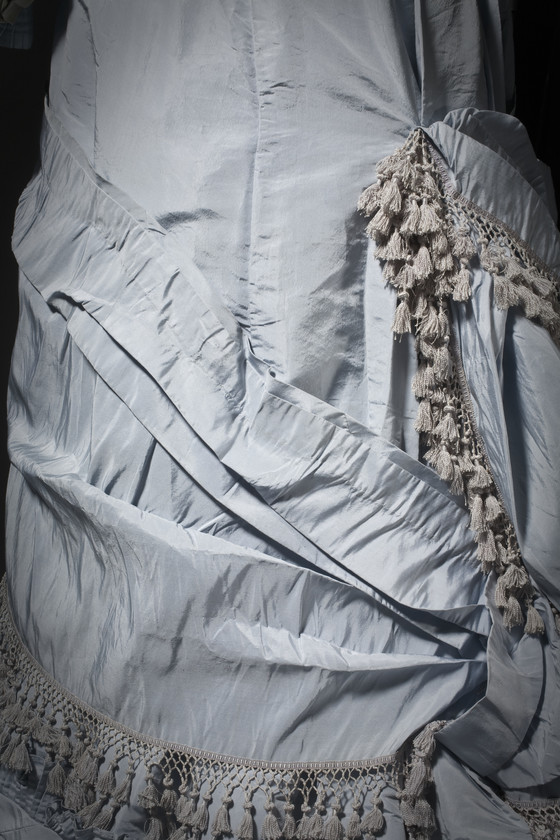 Silk plain weave (taffeta) with silk ribbon and silk-knotted trim