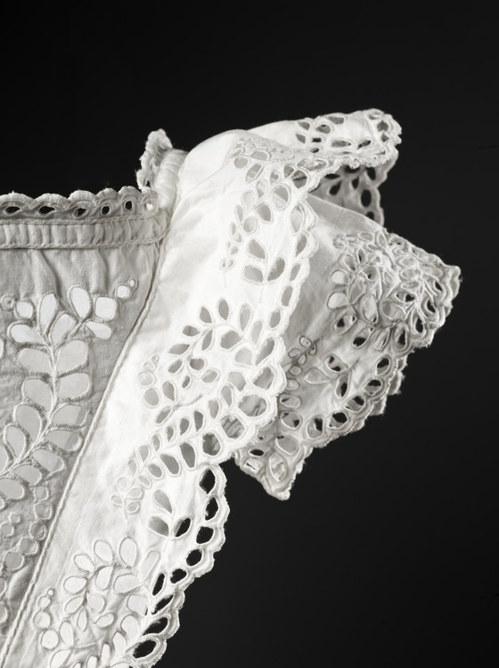 Cotton plain weave with cotton cutwork embroidery (broderie anglaise)