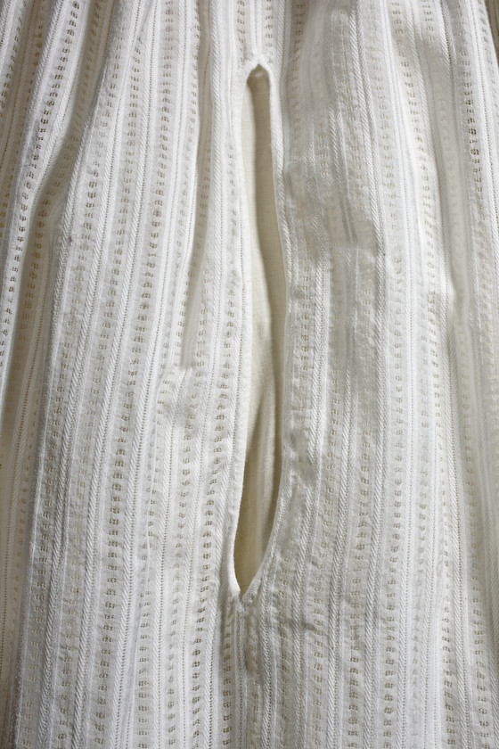 Cotton twill, cotton plain weave, and cotton gauze with linen lace
