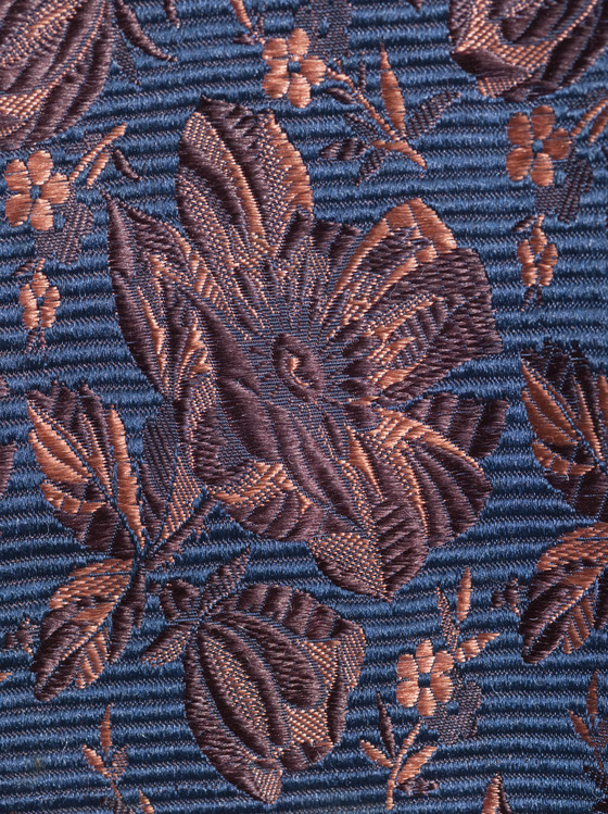 Silk plain weave with warp-float and supplementary weft patterning, and silk satin