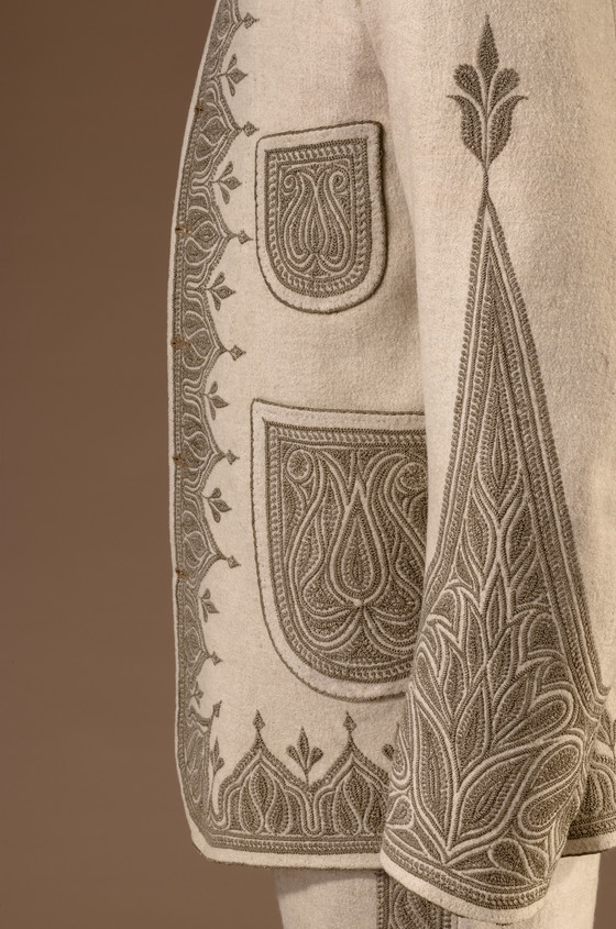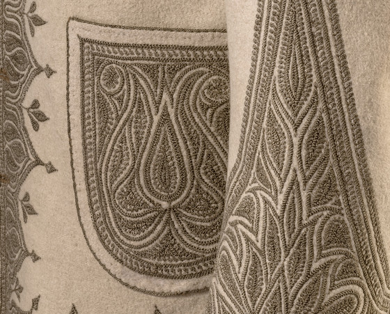 Goat-fleece underdown (cashmere wool) twill with silk embroidery