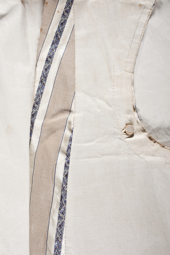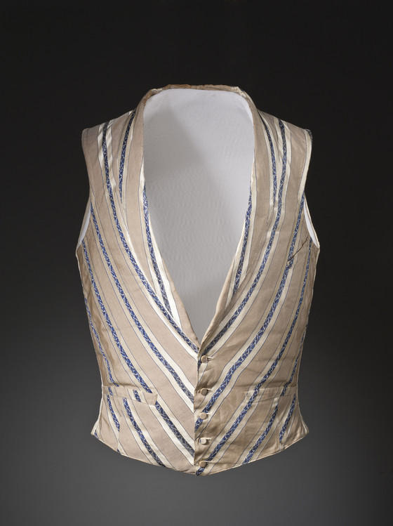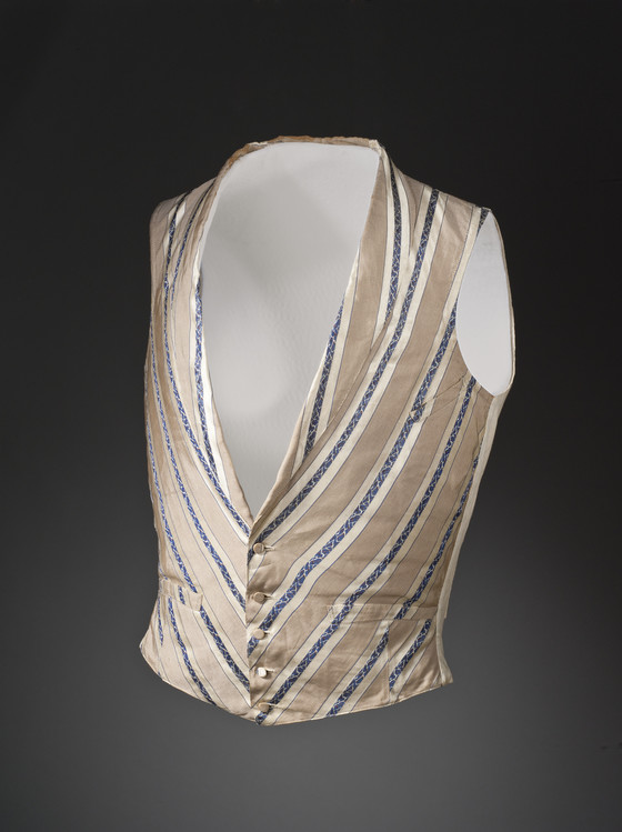 Vest: silk satin with supplementary weft-float patterning; pads: cotton twill with cotton wadding