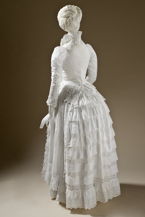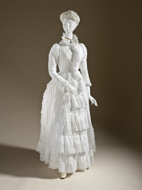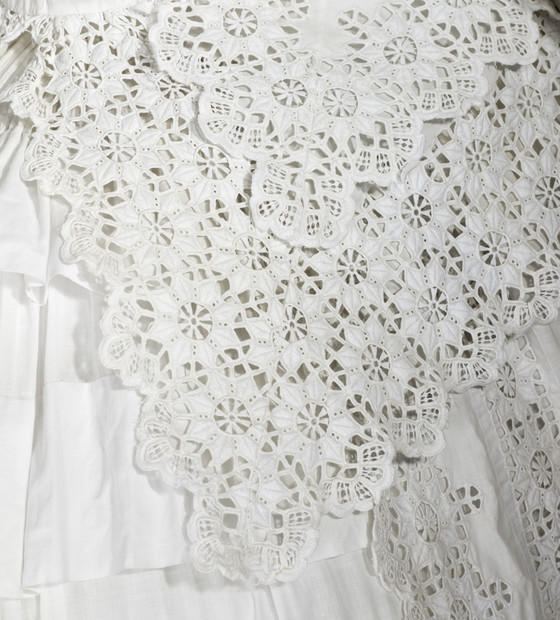 Cotton plain weave with cotton cutwork embroidery (broderie anglaise) and cotton needle lace