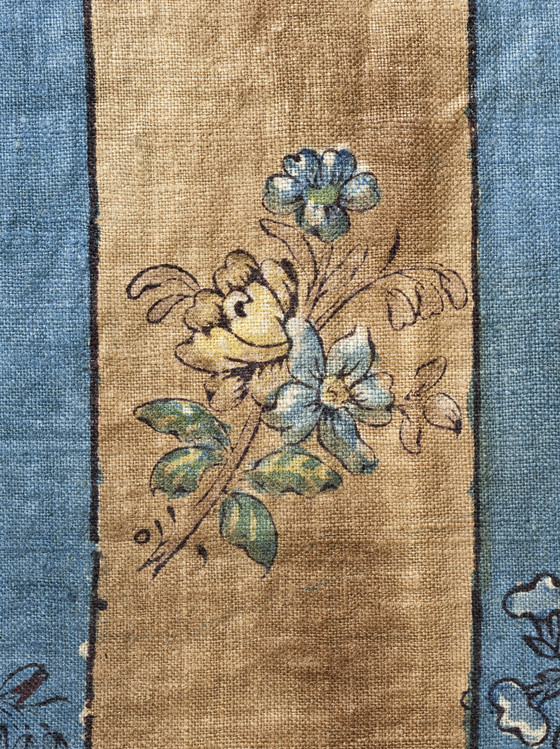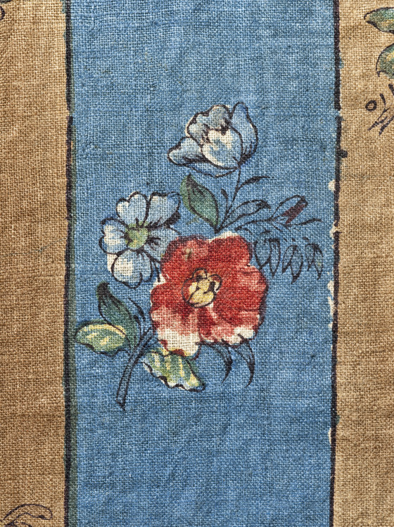 Cotton plain weave, block printed and glazed