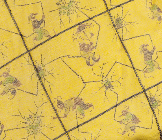 Silk and cotton gauze with silk supplementary warp and weft patterning, block-printed