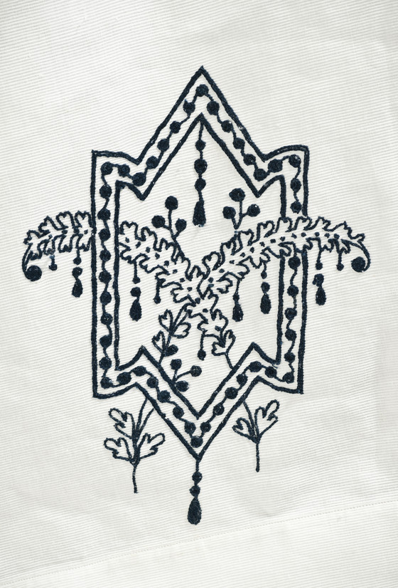 Cotton plain weave, with supplementary warps (ribbed), and cotton machine embroidery