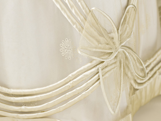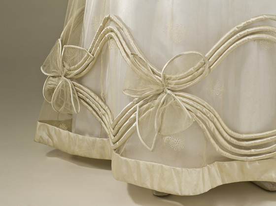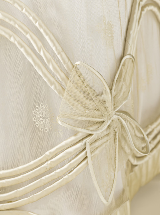 Silk net with silk embroidery and silk satin trim
