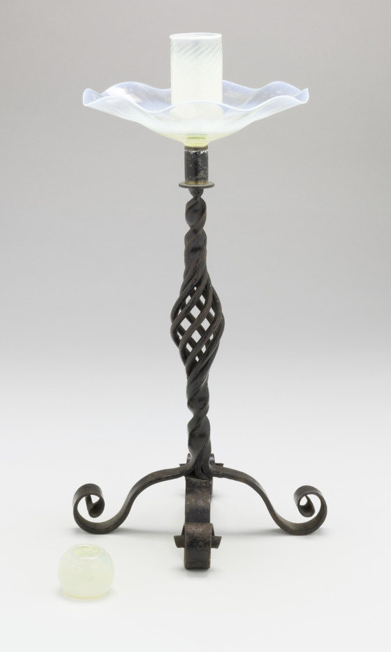 a) Candlestick holder height: 3 1/2 in. (8.89 cm); a) Candlestick holder diameter: 5 1/2 in. (13.97 cm); b) Finial height: 1 in. (2.54 cm); b) Finial diameter: 1 1/4 in. (3.18 cm); c) Base: 9 x 6 x 6 in. (22.86 x 15.24 x 15.24 cm); Overall: 11 x 6 x 6 in. (27.94 x 15.24 x 15.24 cm)