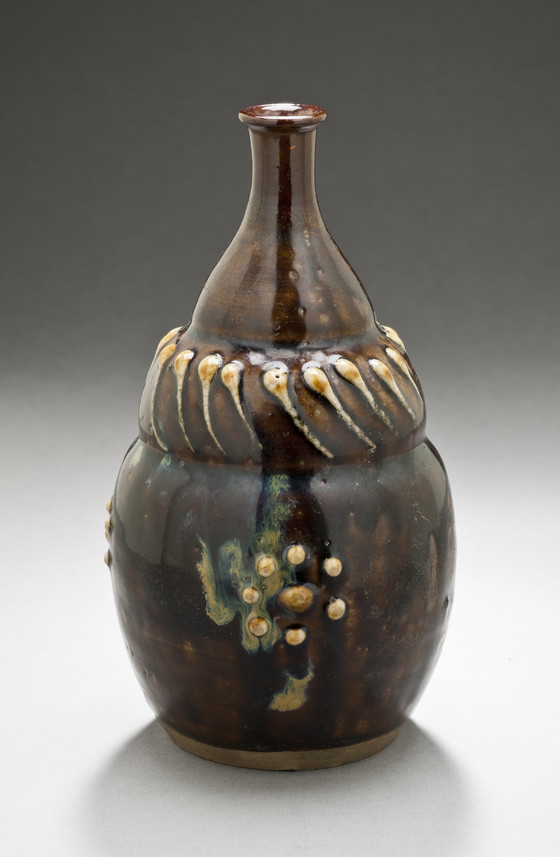Onta ware; stoneware with iron glaze and ash glazes with white slip decoration