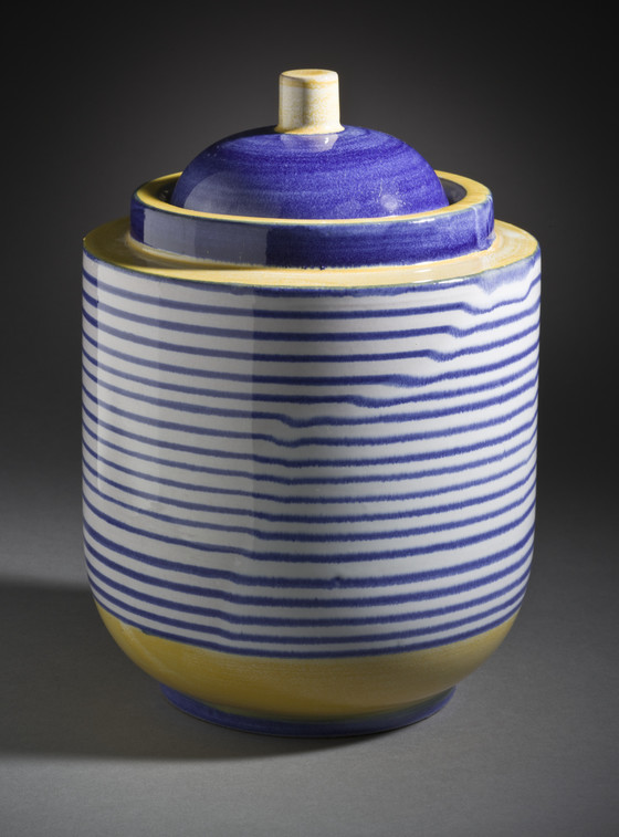 Base) Diameter: 6 3/8 in. (16.1925 cm); Base) Height: 7 1/8 in. (18.0975 cm); Lid) Diameter: 4 in. (10.16 cm); Lid) Height: 2 1/2 in. (6.35 cm)