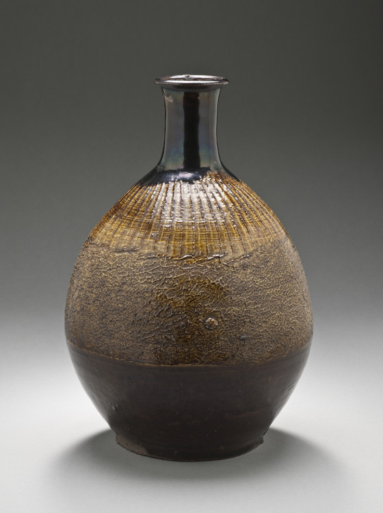 Alternate Title: 上野焼鉄釉灰釉打ち刷毛目らっきょう形徳利