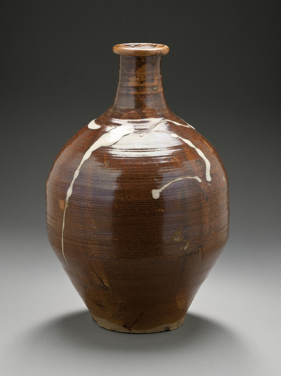 Stoneware iron glaze and white slip trail, possibly Iwami ware