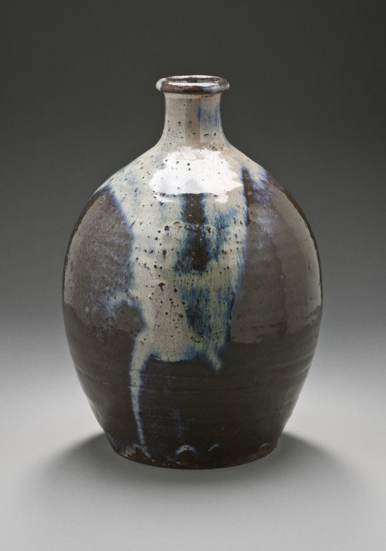 Alternate Title: 小岱焼鉄釉藁釉流らっきょう形徳利