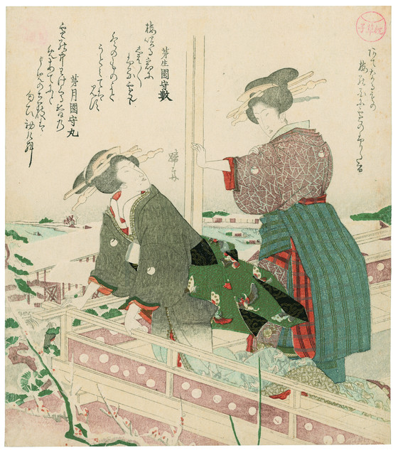 Surimono; color woodblock print with brass, tin, and embossing