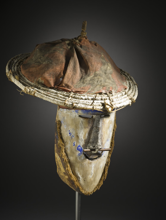Forepart of human skull, human hair, wood, fiber, parinarium nut paste, and pigment