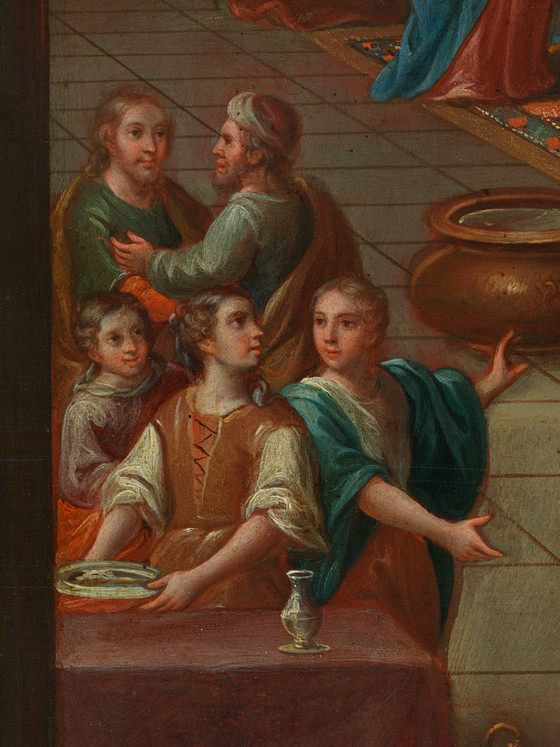 In the Adoration of the Kings (M.2012.38.2), Enríquez referenced a major work in Mexico City’s cathedral by his predecessor Juan Rodríguez Juárez—notably, the treasure-chest-wielding figure portrayed from behind (which in turn drew on a famous print of the Battles of Alexander) by Bernard Picart (1673–1733). Additional details, such as the small children, evoke yet another print in Nadal’s book of the same subject. By referencing these works, Enríquez asserted the significance of local and European traditions alike in the creative process of New Spanish painters.