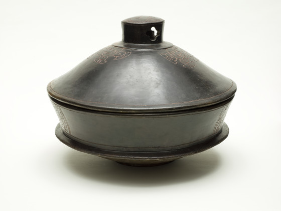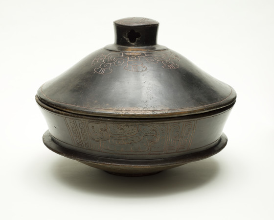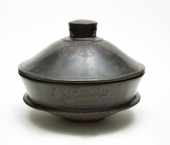Slip-painted ceramic with post-fire pigment and incised decoration