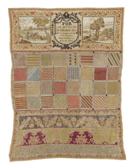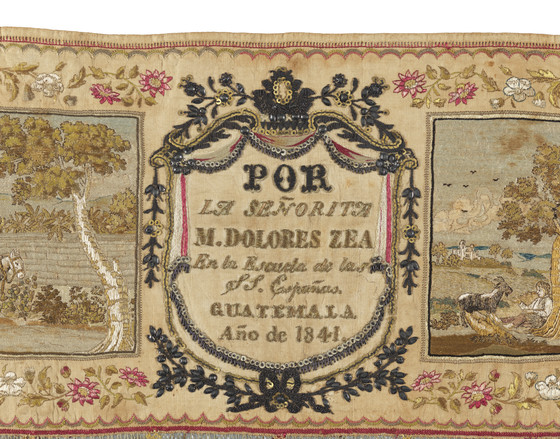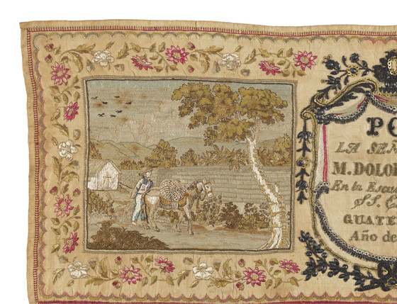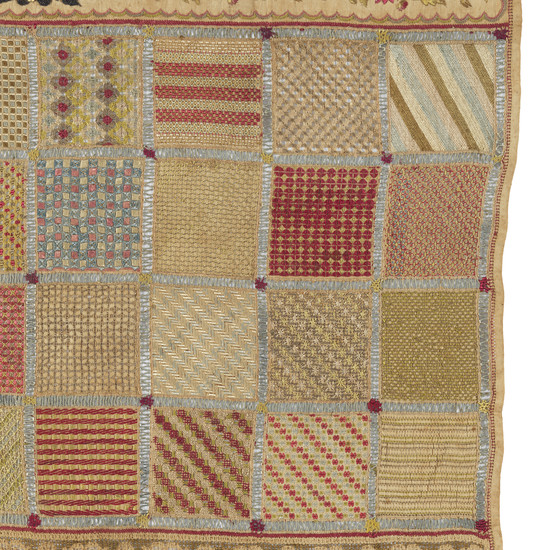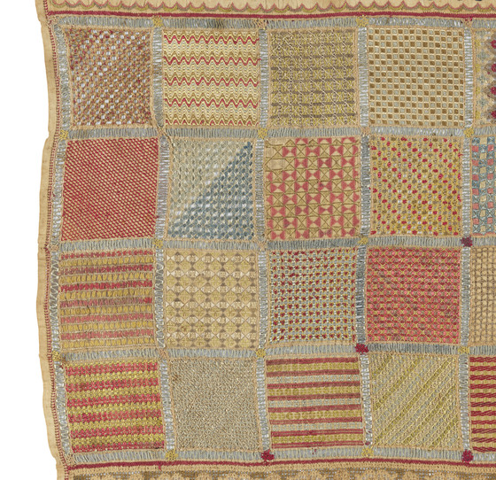 Cotton plain weave with silk and metallic-thread embroidery and metal sequins