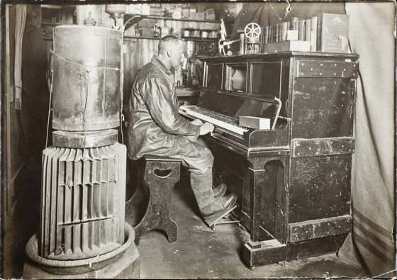 Cecil Mears Playing Pianola In The Winter Quarters Hut In The Antaracticirca