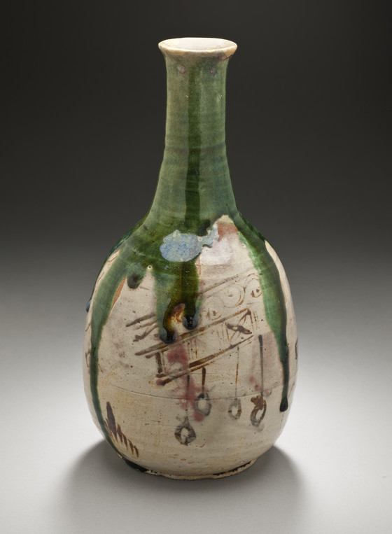 Alternate Title: 瀬戸焼織部流鉄絵柿文徳利
