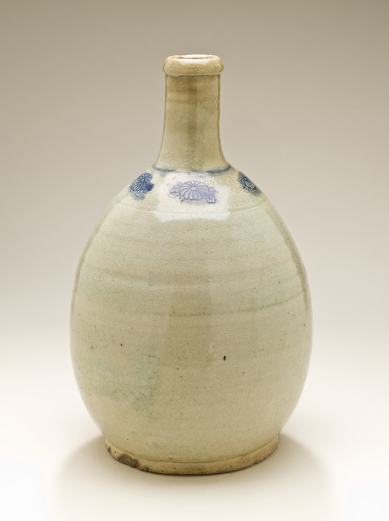 Seto ware; stoneware with white glaze and blue glaze decoration