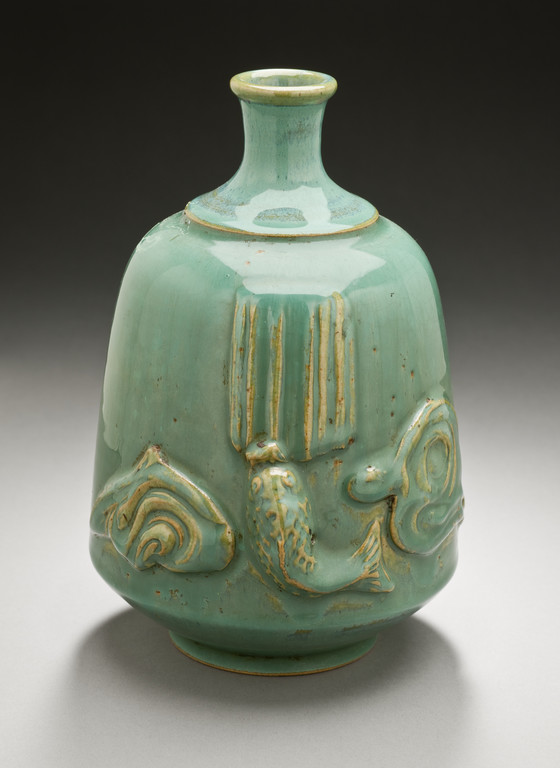 Sake Bottle with Design of a Carp Climbing a Waterfall