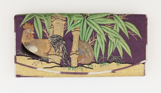 Samurai-Class Woman’s Purse (hakoseko) with Rooster and Hen in Bamboo Grove