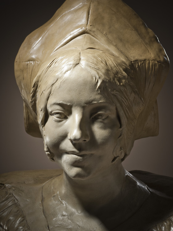 Enameled stoneware with a matte glaze, toned from chamois brown to shaded white