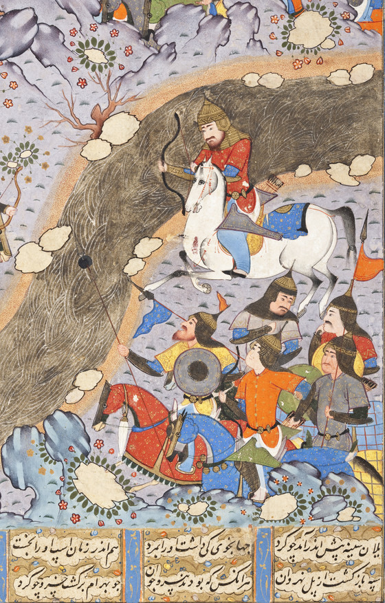 The Night Attack of Bahram Chubina on the Army of Khusraw Parvis, Page from a Manuscript of the Shahnama (Book of Kings) of Firdawsi