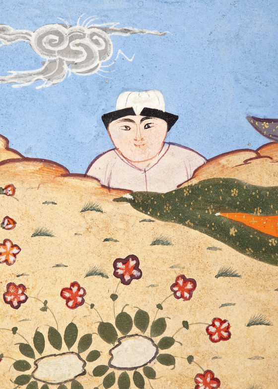 Opaque watercolor heightened with gold and silver on paper