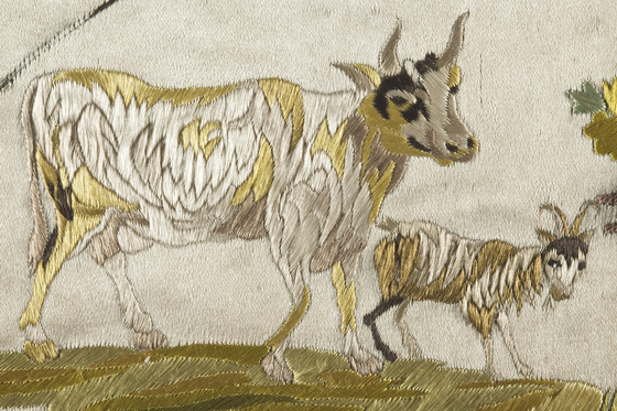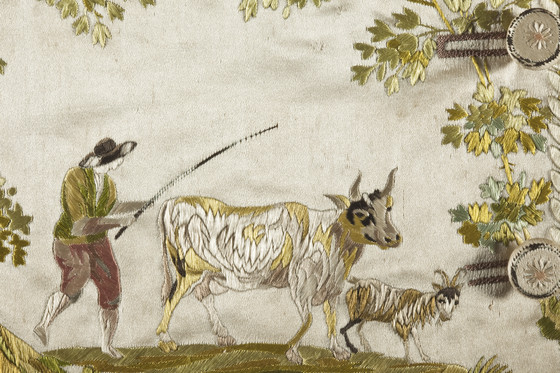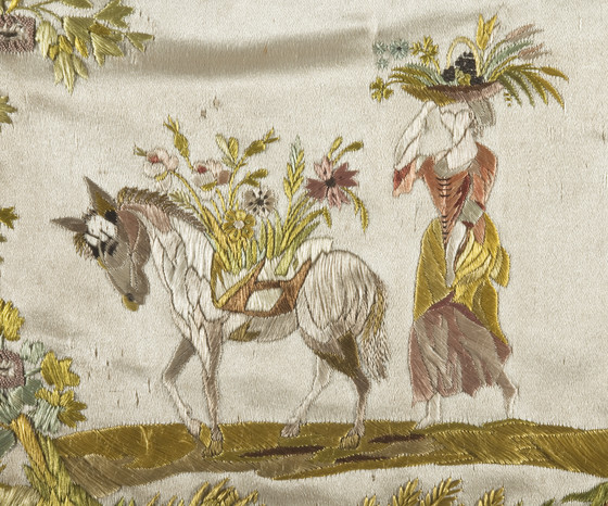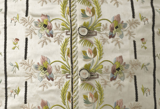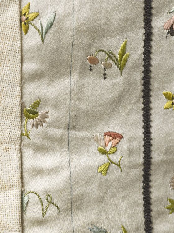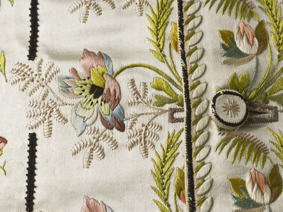 Silk satin with silk embroidery and silk grosgrain ribbon