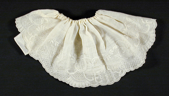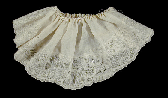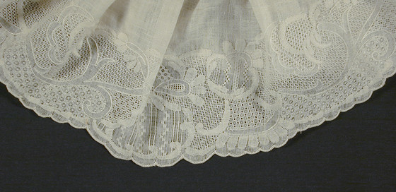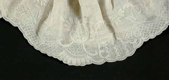 Single sleeve ruffles of white cotton Dresden work on white linen