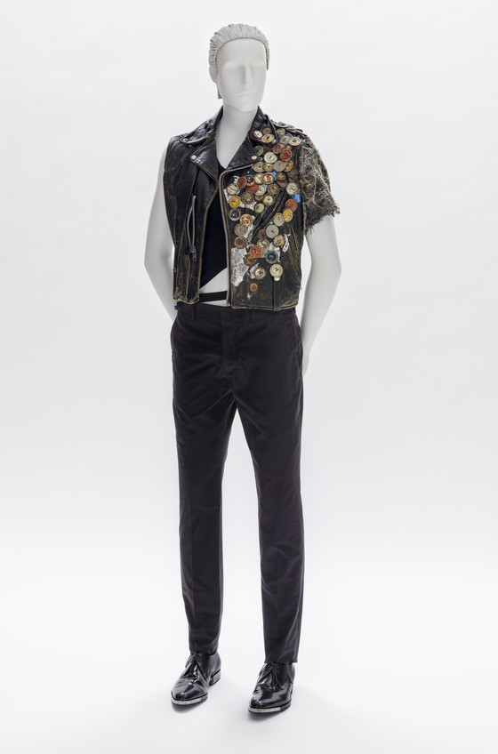 Leather, synthetic/cotton felt (interfacing), metal bottle caps, and laminated foil
