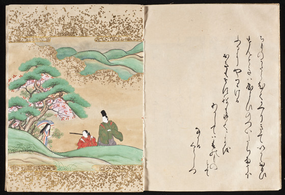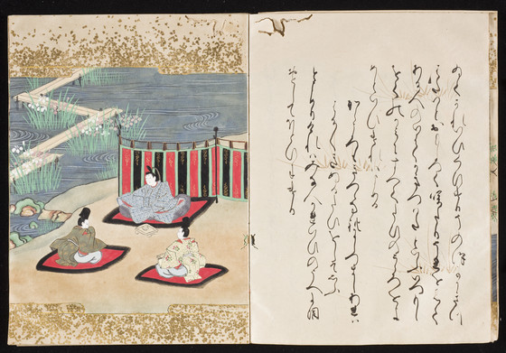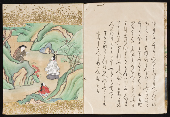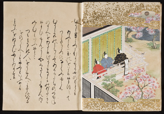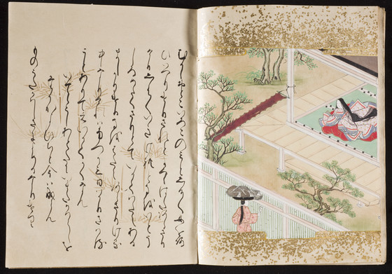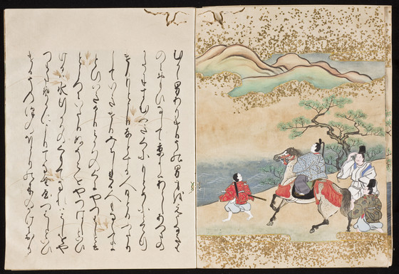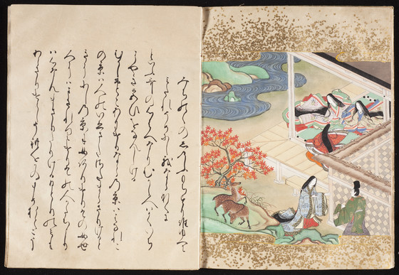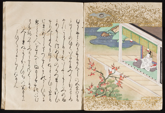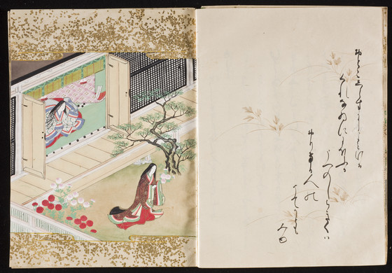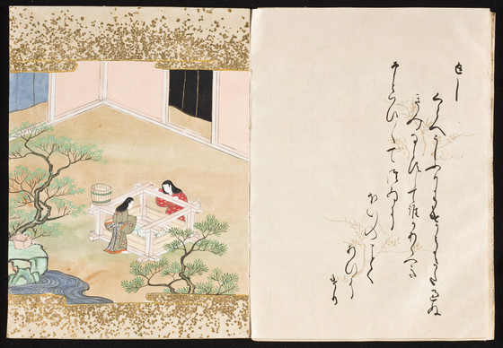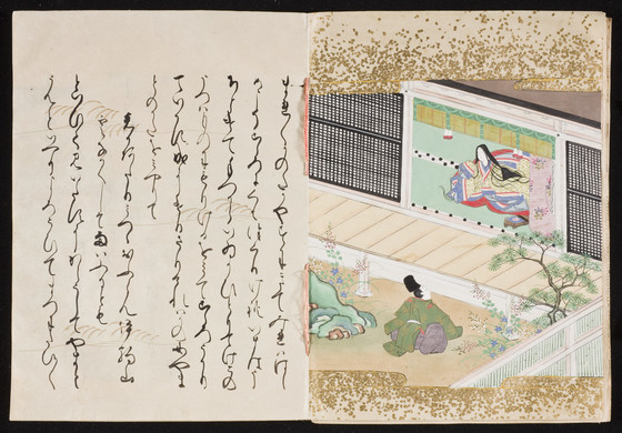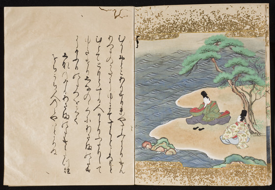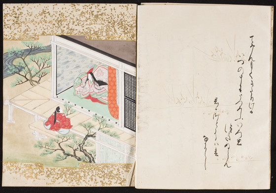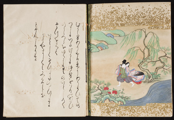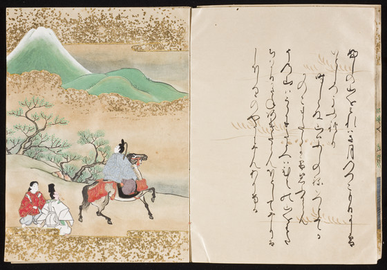 Two-volume album; ink, color, and gold on paper, brocade covers; volume 1: 24 painted images; volume 2: 22 painted images