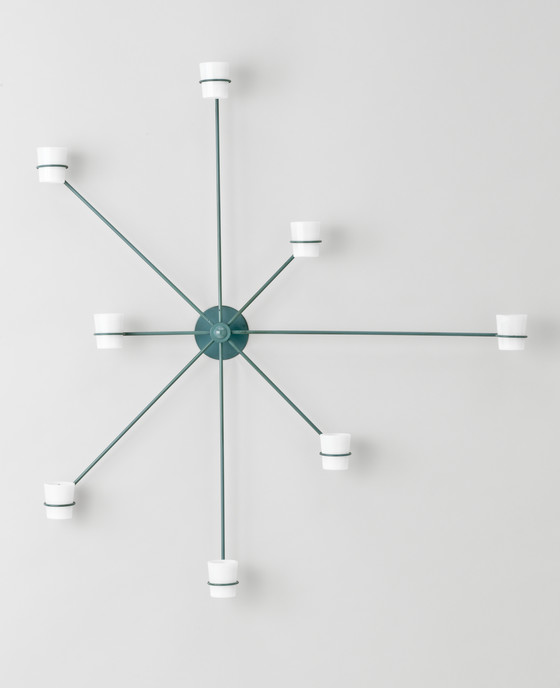 a): 36 5/8 x 35 1/2 x 4 1/4 in. (93.03 x 90.17 x 10.8 cm); b-i) Height: 2 1/2 in. (6.35 cm) each; b-i) Diameter: 2 1/8 in. (5.4 cm) each