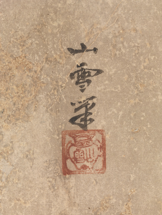 Two-panel folding screen; ink on paper
