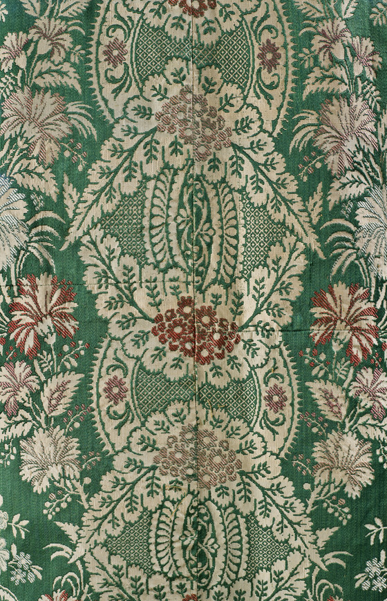 Silk satin with silk supplementary-weft patterning bound in twill (lampas)